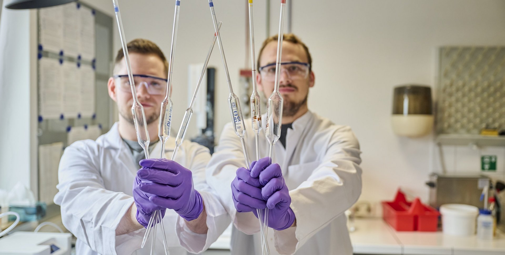 Du lernst, wie man sicher im Labor arbeitet, mit Gefahrstoffen umgeht und dabei Umweltschutz und Qualitätsstandards jederzeit einhält. Sicherheit hat bei uns oberste Priorität.